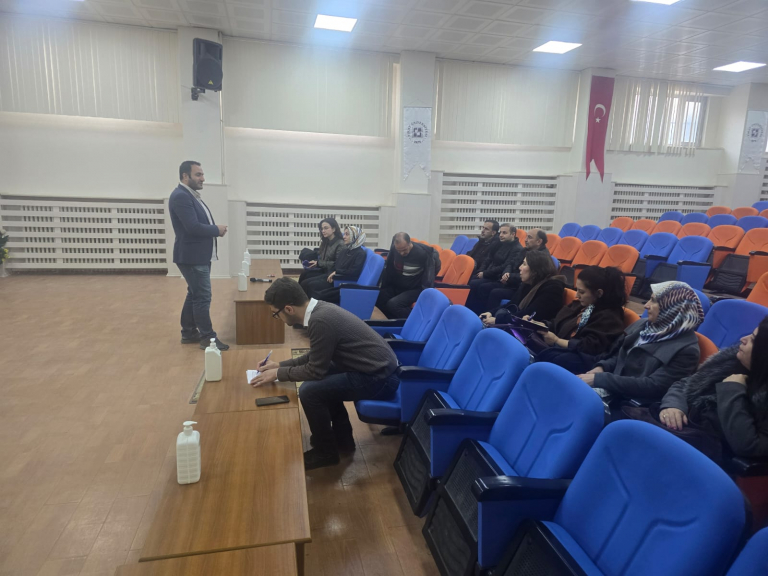 Eğitim Fakültesi A Blok'ta Şehit Canbert TATAR Konferans Salonunda düzenlenen toplantıda, EGT15 Öğretmenlik Uygulaması I dersinin uygulama süreci, görev ve sorumluluklar, değerlendirme ölçütleri ile okul–üniversite iş birliği kapsamında yürütülecek çalışmalar hakkında toplantıya katılan uygulama öğretmenlerine ve öğretim üyelerine Türkçe Öğretmenliği Program Başkanı Doç. Dr. Faruk POLATCAN tarafından kapsamlı bilgilendirme yapıldı.